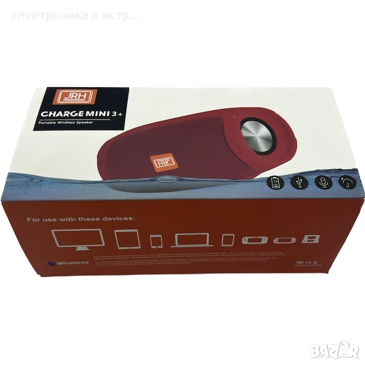 Преносима колонка JRH, Charge 3 mini+, Bluetooth, IP67, Червен