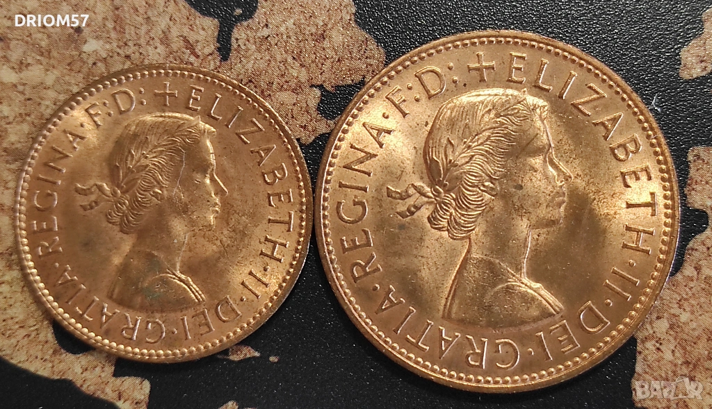 Монети Великобритания(UNC) - 2 бр.› Кралица Елизабет II (1953-1967) → Обява 53335781