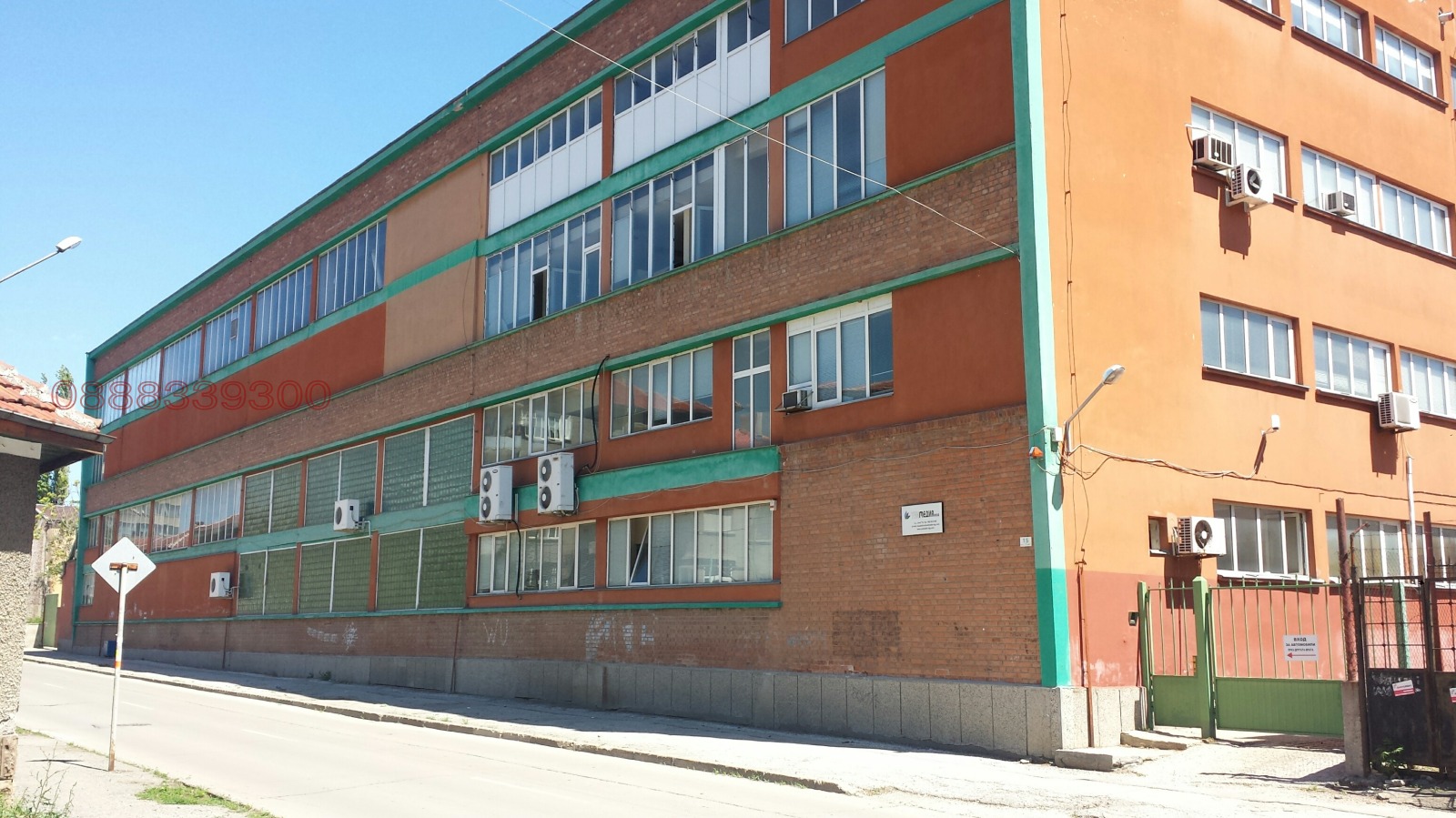 Предложеният имот представлява производствено-административна сграда построена върху 1520 м2 на собствена земя от 3200м2.Административната част е на 4 етажа с обща площ офиси 372 м2 с офис обзавеждане,санитарни възли 72 м2,съблекални с бани 48 м2 и стълбища и коридори 171 м2.Поизводтвено-складовата част е с обща площ от 3280 м2 от които 1750м2 са с височина 6м с портален кран и два асансьора по 1,5 т.,300 м2 -с височина 3,5м,останалите 936 м2 -с височина 2,5м.
