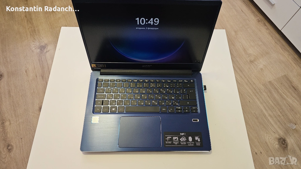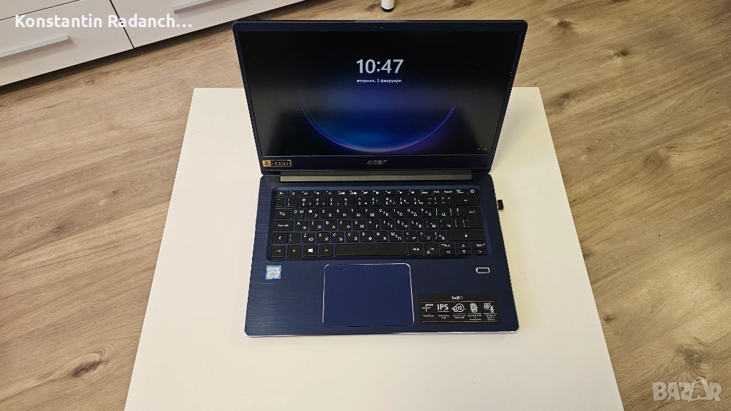 Предлагам професионален ултрабук Acer Swift 3 с елегантен тъмносин металик дизайн, идеален за работа, учене и ежедневна употреба.