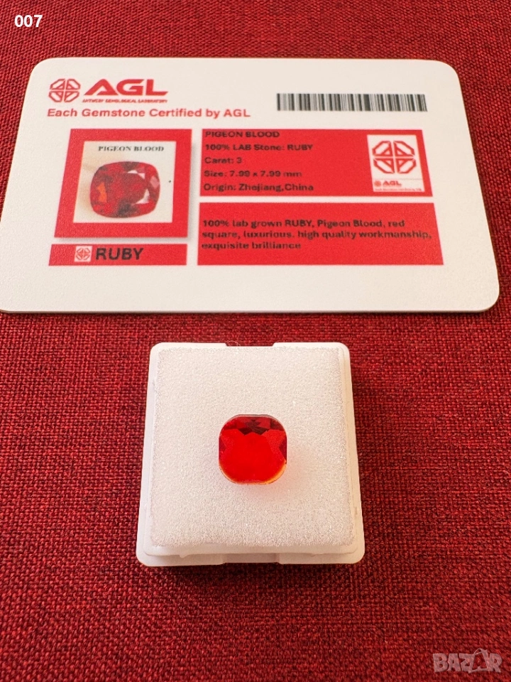 РУБИН 7.99mm, 3ct с AGL сертификат → Обява 53335896