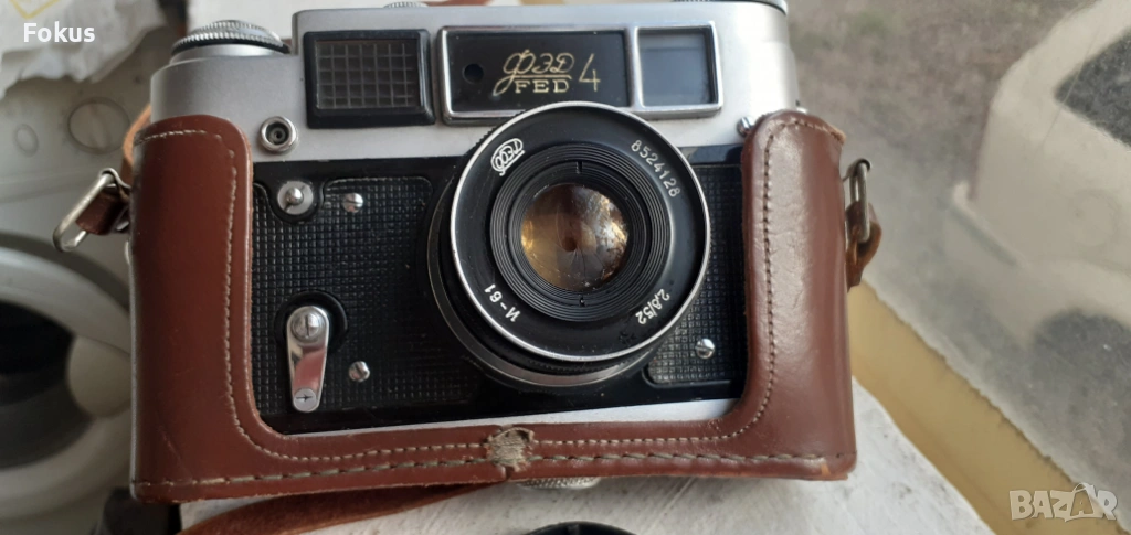 Стар механичен съветски фотоапарат Фед 4 с кожен калъф → Обява 53335923