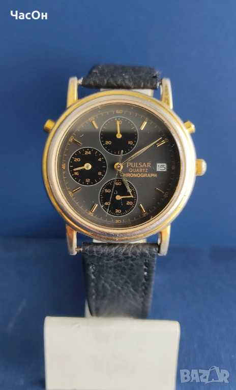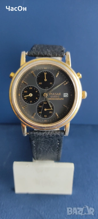 Много запазен мъжки часовник PULSAR Quartz Hronograph. Красив и функционален. Всички механизми работят. Като всеки кварцов часовник, поддържа точно време.