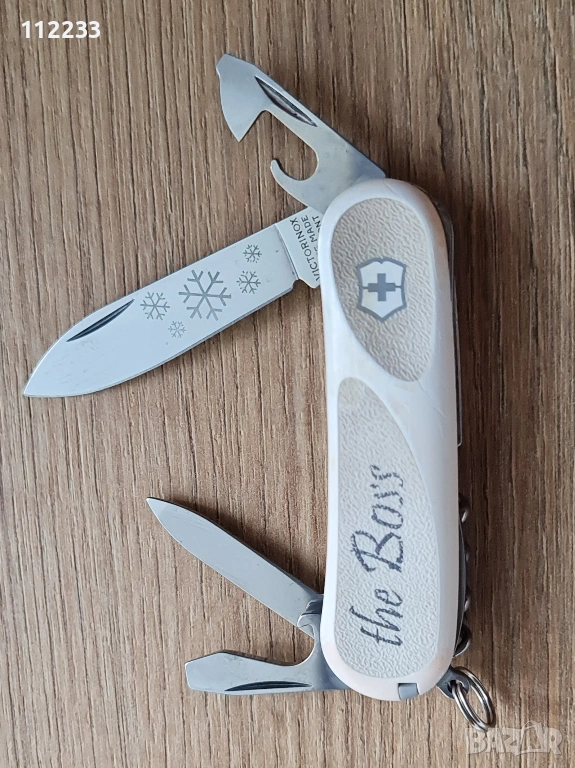 Води се вторият модел от тъй наречената зимна серия джобни ножчета на Victorinox. По принцип изключително рядък модел,но този е брандиран ,без кутийка и не е нов,за това и парите са му такива