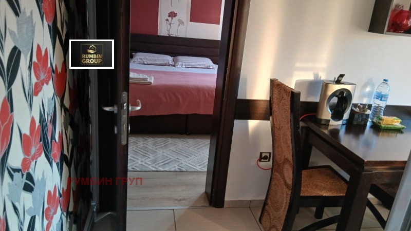 Жилището е с отлично и функционално разпределение, включващо входно антре, кухня, доста голяма и светла спалня, баня, както и балкон. Пространството е обособено по най-добрия начин и напълно отговаря на нуждите на бъдещите си наематели.Напълно оборудвано с всички необходими електроуреди и техника, включително телевизор и климатик.