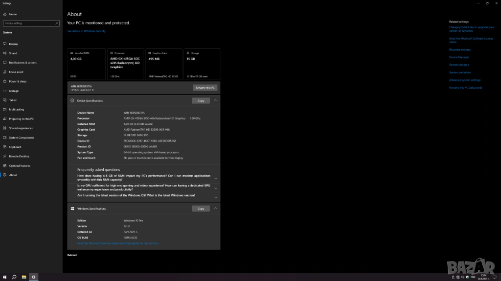 Процесор: AMD GX-415GA (quad core) 1.5GHz