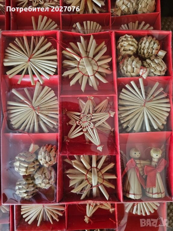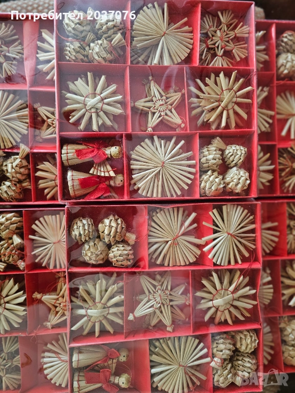 Ръчно изработени от слама коледни играчки.Налични 10 кутии.