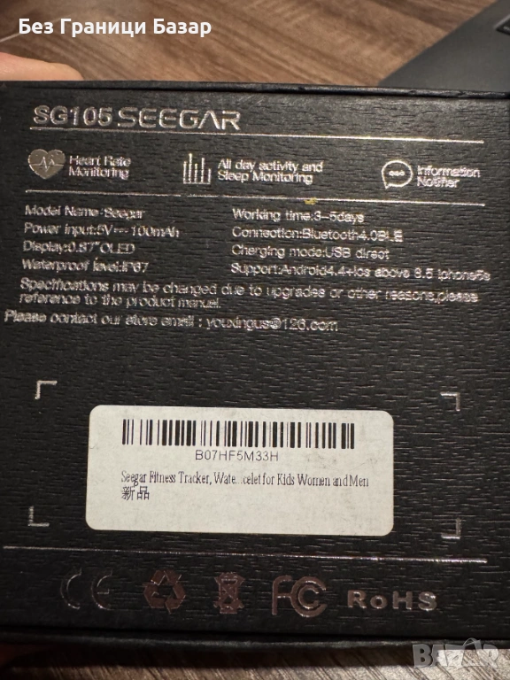 Нова Смарт гривна SEEGAR фитнес тракер с мониторинг на пулс, сън, активност, Bluetooth, водоустойчив, снимка 1 - Смарт гривни - 53336245 Нова Смарт гривна SEEGAR фитнес тракер с мониторинг на пулс, сън, активност, Bluetooth, водоустойчив, снимка 2 - Смарт гривни - 53336245 Нова Смарт гривна SEEGAR фитнес тракер с мониторинг на пулс, сън, активност, Bluetooth, водоустойчив, снимка 3 - Смарт гривни - 53336245 1/3