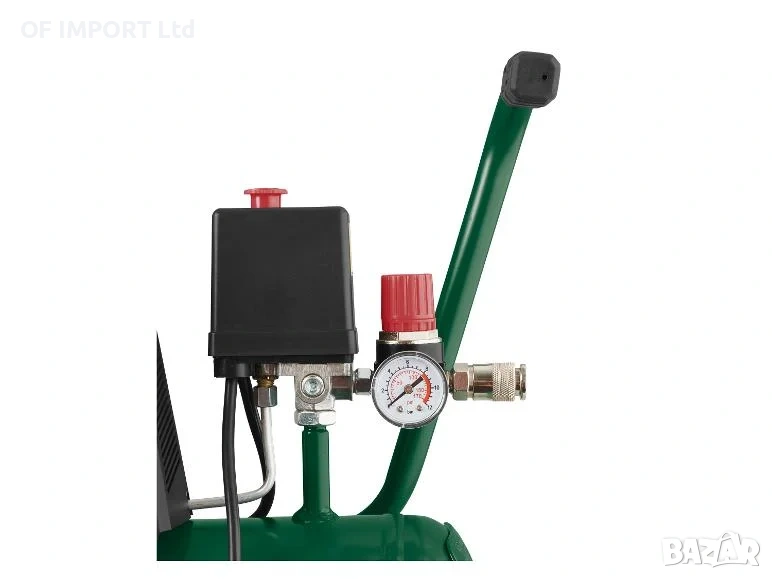- Изход за сгъстен въздух с бързосъединител, включително манометър (bar / psi)