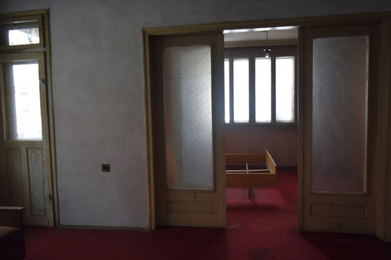 Жилищната площ практично се разпределя между кухня (подови настилки балатум), хол, спалня,спалня, баня, тоалетна (цимент, боя) и една три тераси/ на хола,на кухнята и на спалнята/ Подовите настилки са с балатум, стени - тухла и боя, дървена дограма.
