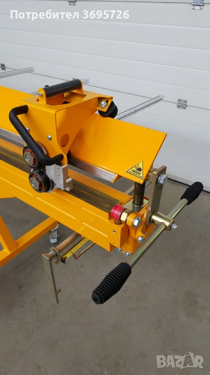 3. ЗАДНА МАСА С ОПОРИ (1000 мм) – (Допълнителна опция) позволява поставяне на ламарина и свободно движение на материала. Може да служи като място за поставяне на листове ламарина. Оснащен е със скала, която позволява точно настройване на огънатата и нарязана ламарина.
