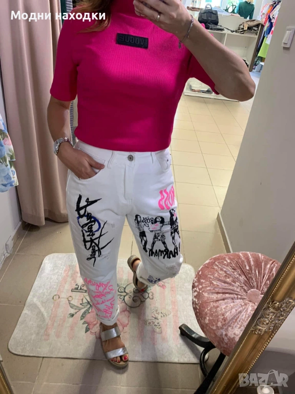 Модерни бели дънки с ефектни надписи