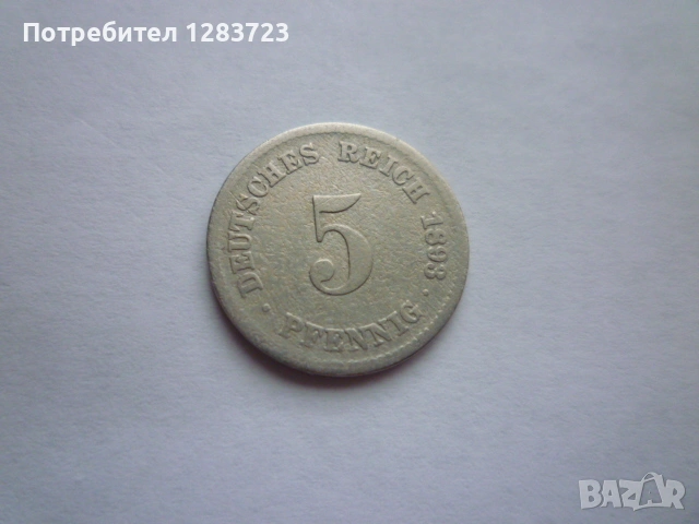 5 пфенига 1893 година серия `J` Германска империя (1871 - 1922).