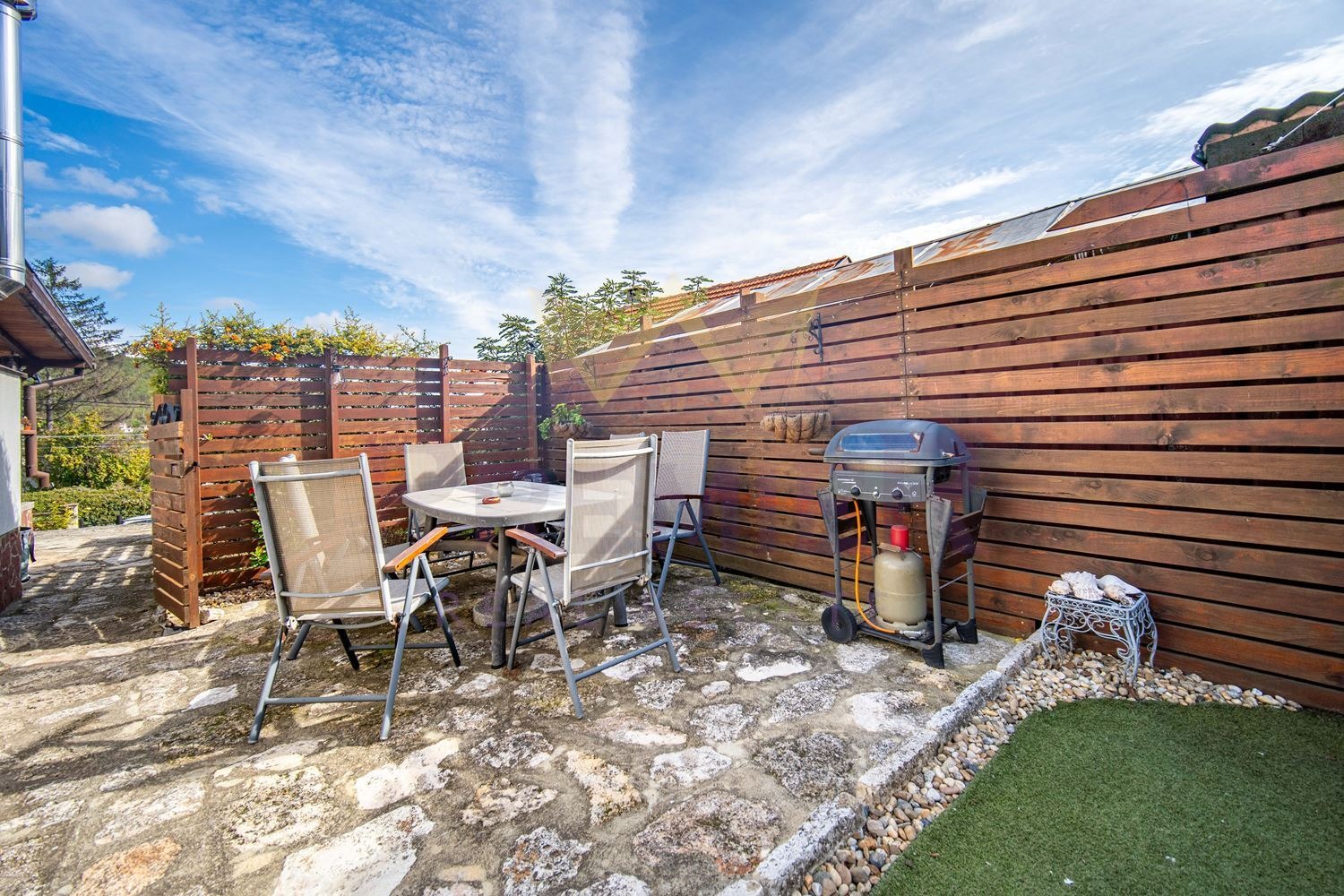 Дворът е прекрасно аранжиран и подреден, съобразен с особеностите на терена. Пространството създава усещане за хармония и пълноценна почивка всеки ден.