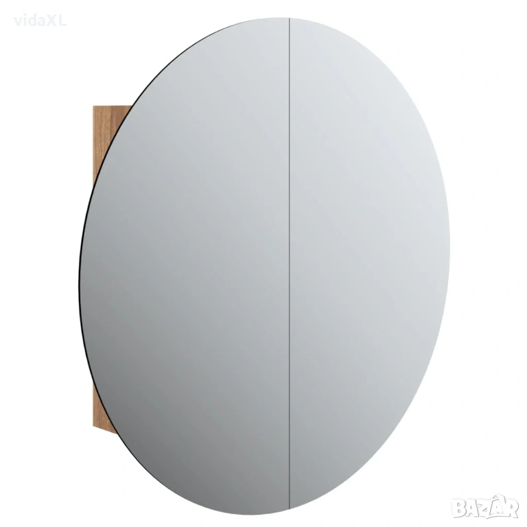 vidaXL Шкаф за баня с кръгло огледало и LED, дъб, 54x54x17,5 см(SKU:345590)
