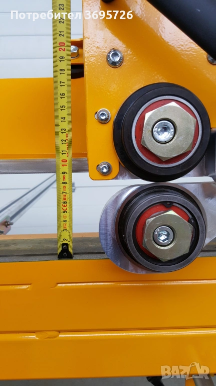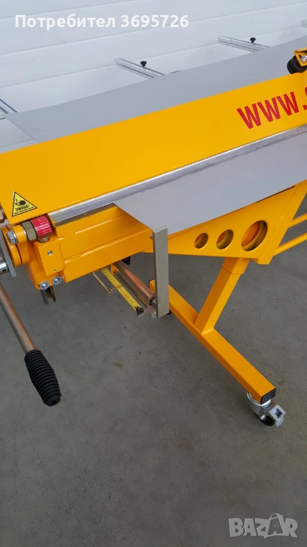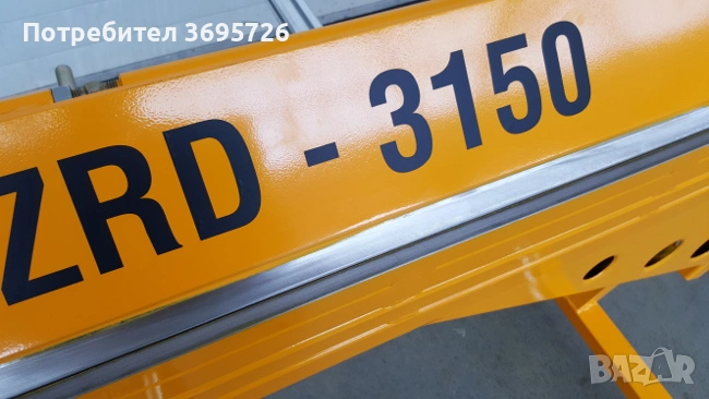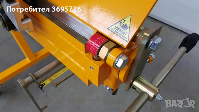 3. ЗАДНА МАСА С ОПОРИ (1000 мм) – (Допълнителна опция) позволява поставяне на ламарина и свободно движение на материала. Може да служи като място за поставяне на листове ламарина. Оснащен е със скала, която позволява точно настройване на огънатата и нарязана ламарина.