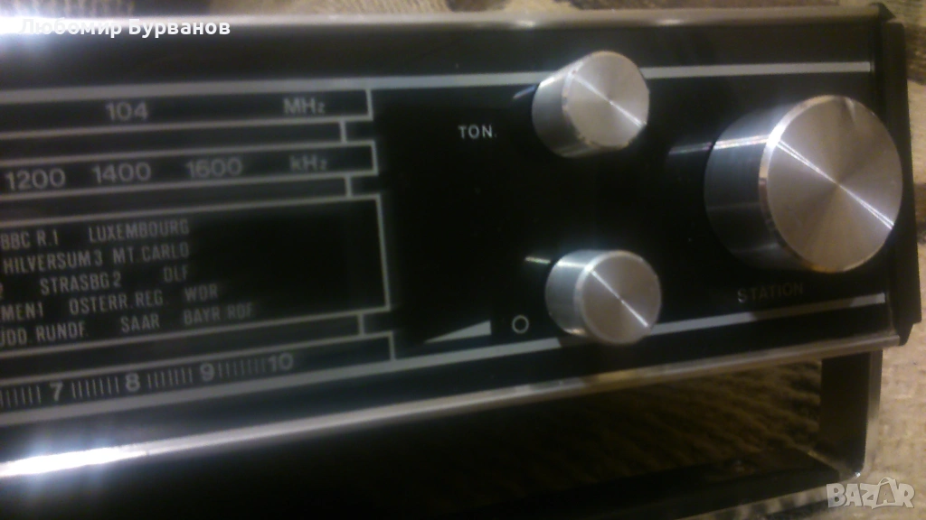 Втория е френски модел също с германиеви транзистори,работи на батерии 1.5 волта от големите, също и на адаптер/токоизправител/!Има отстрани бекса за автомобилна антена.УКВ-обхвата му е 88-104 мегахерца!Няма липси и също не е ремонтиран.Работи перфектно!