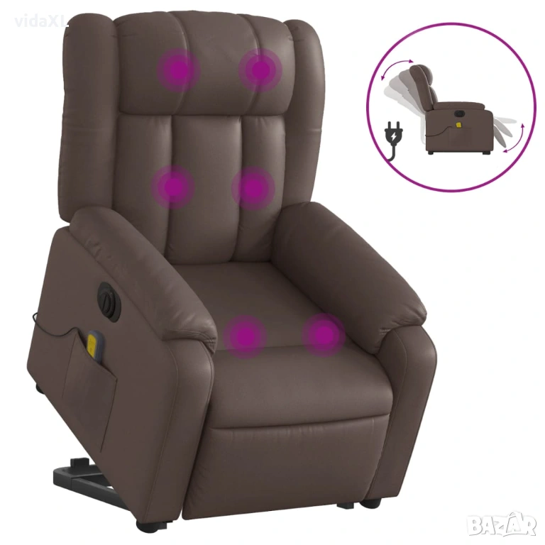 vidaXL Електрически изправящ масажен реклайнер стол, кафяв, еко кожа(SKU:3205287)