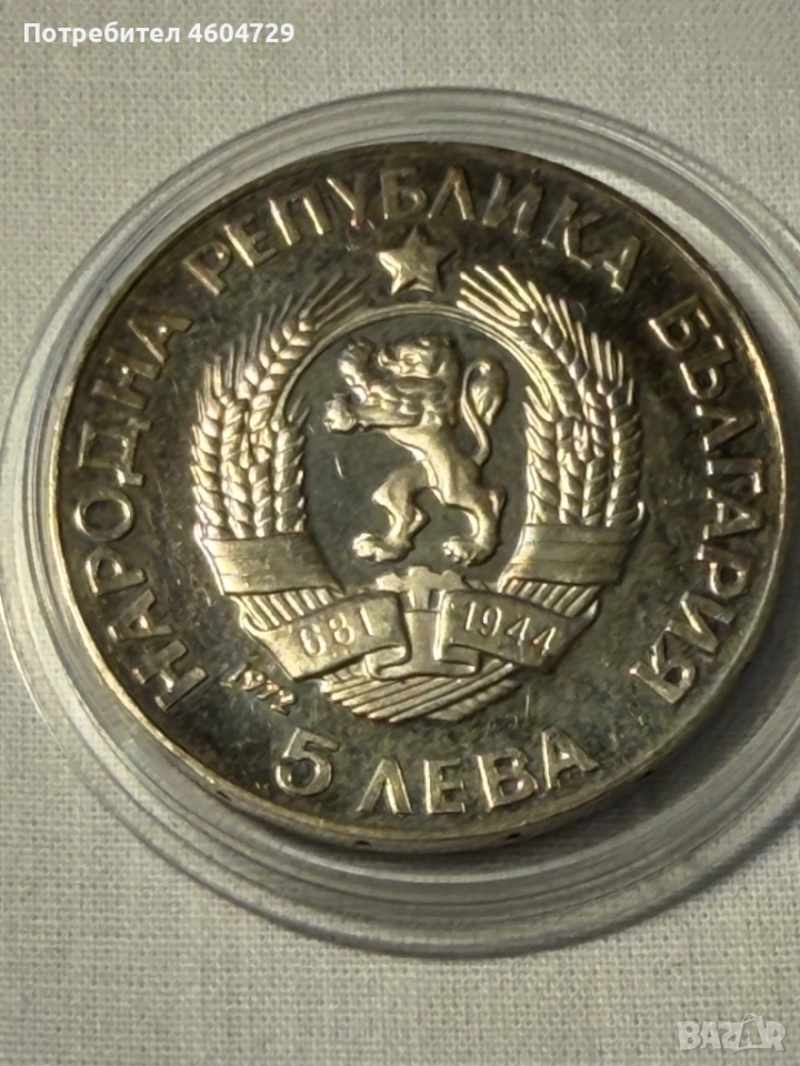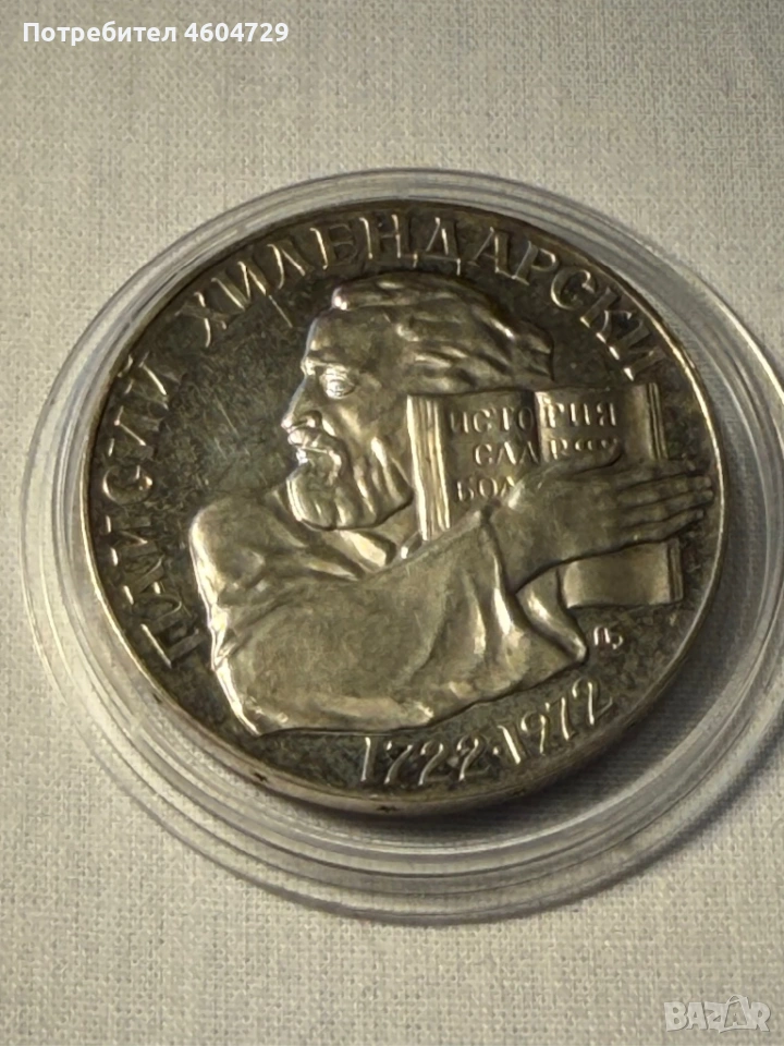 5 лева 1972 Паисий висока проба сребро → Обява 53336879