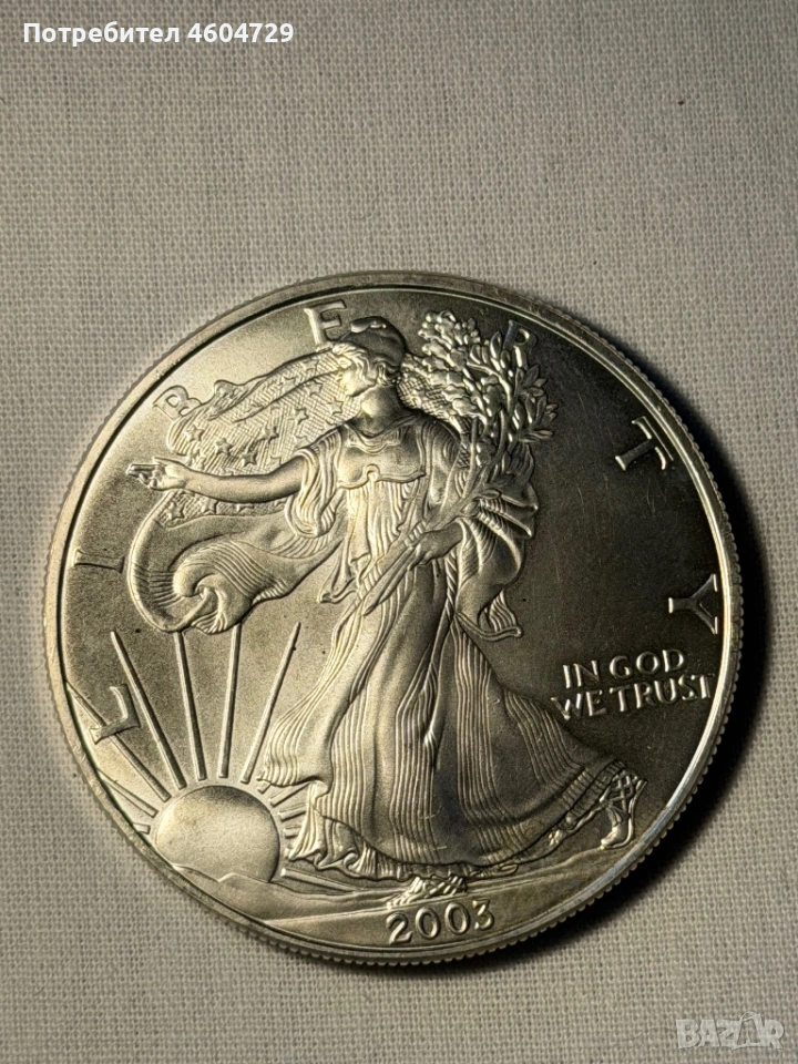 1 долар 2003 1OZ, снимка 1 - Нумизматика и бонистика - 53337033 1 долар 2003 1OZ, снимка 2 - Нумизматика и бонистика - 53337033 1/2