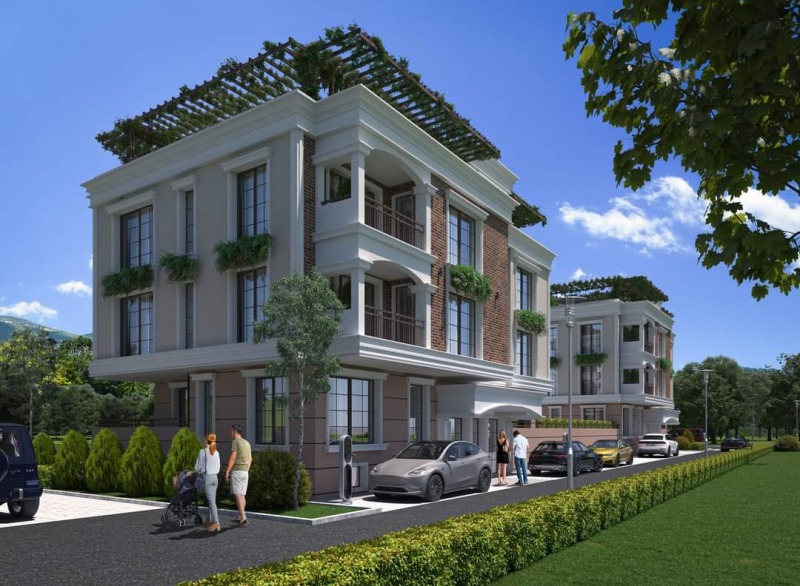 Затворен комплекс с контролиран достъп , видеонаблюдение 24 часа в денонощието, минимални такси поддръжка , в който са ситуирани 3 малки сгради с по 7 апартамента.