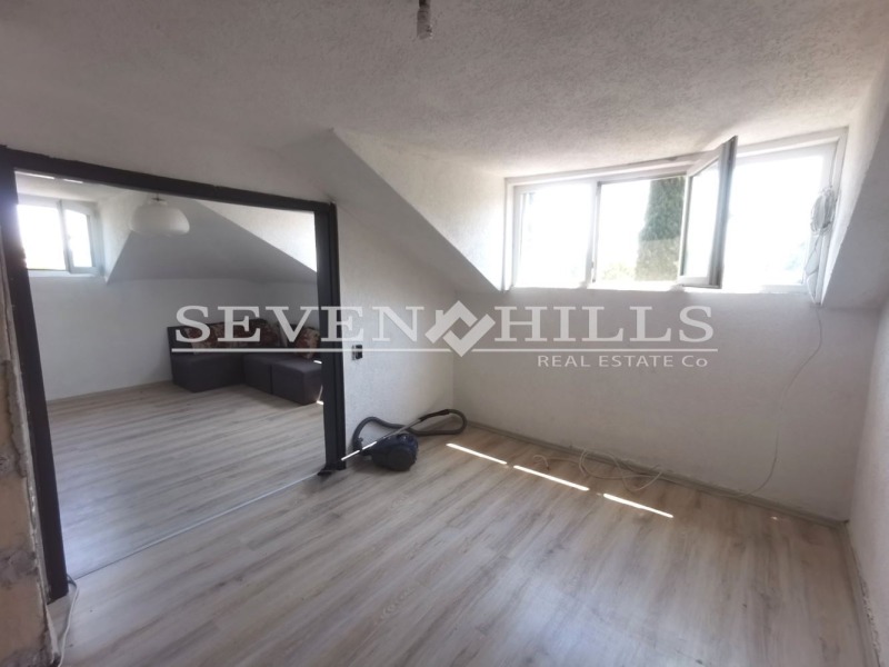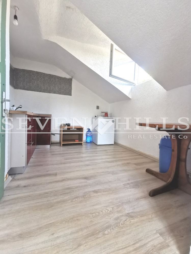входно антре, дневна , спалня, кухня, като всички стаи са с преход, отделна баня извън , както и тоалетна с общо ползване за етажа. Изложенияата са изток и юг. Има възможност за преустройство и поставяне на санитарен възел вътре в апартамента. Преди седем години е правен ремонт на покрива.
