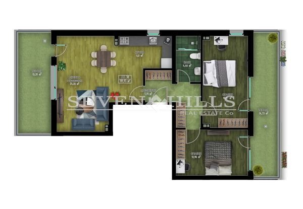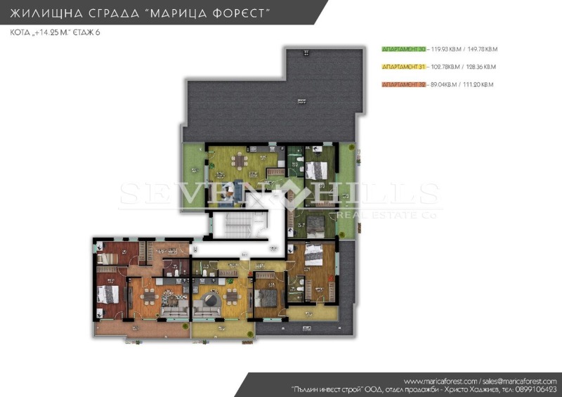 Агенция за недвижими имоти 'SEVEN HILLS' продава тристаен апартамент с обща площ от 149.78 кв.м. и застроена площ от 119.93 кв.м.