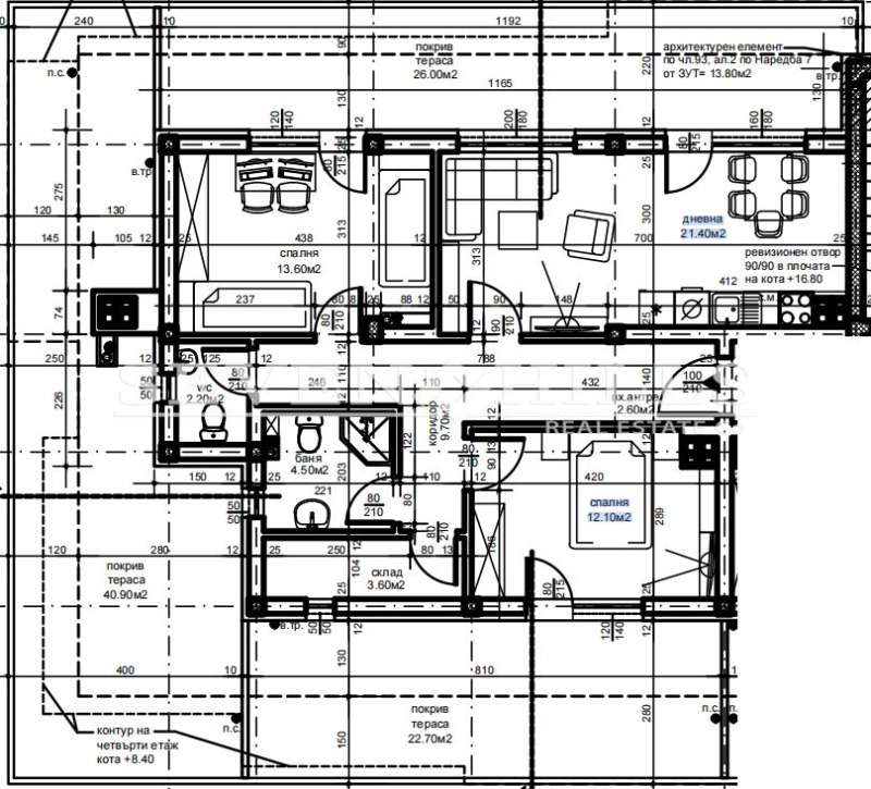 Агенция за недвижими имоти 'SEVEN HILLS' продава просторен тристаен апартамент с обща площ от 197.78 кв.м. и застроена площ от 176.90 кв.м.