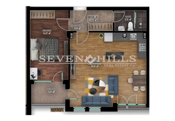 Агенция за недвижими имоти 'SEVEN HILLS' продава двустаен апартамент с обща площ 86.83 кв.м. и застроена площ от 69.53 кв.м.