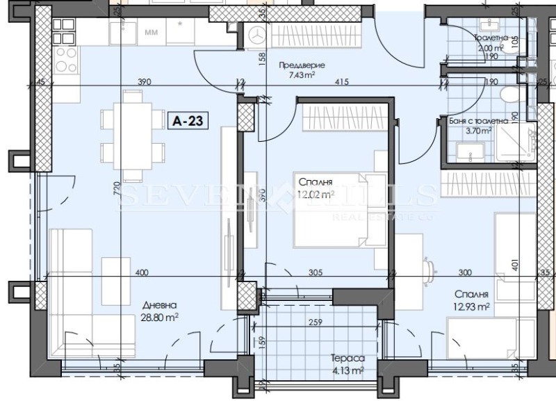 Агенция за недвижими имоти 'SEVEN HILLS' продава тристаен апартамент с обща площ от 103.53 кв.м.
