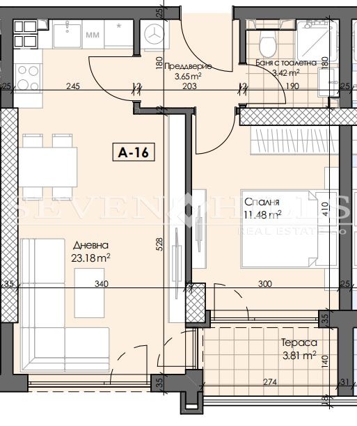 Агенция за недвижими имоти 'SEVEN HILLS' продава двустаен апартамент с обща площ от 66.22 кв.м.