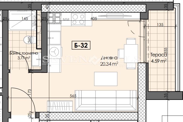 Агенция за недвижими имоти 'SEVEN HILLS' продава едностаен апартамент с обща площ от 43.67 кв.м.