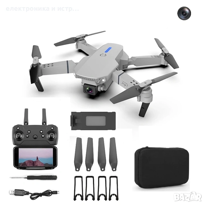 Функции: нагоре/надолу, напред/назад, завой наляво/надясно, страничен полет, LED светлини, режим без глава, автоматично връщане с един бутон, режим на задържане на височината, WiFi FPV