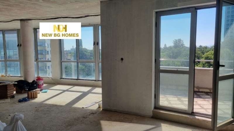 Ню БГ Хоумс предлага за продажба голям двустаен апартамент в тухлена сграда, масивно строителство, с перфектни общи части и с отлична локация в квартала - ул. 'Червена стена'. На метри от нея са Южен парк, хотел Маринела, спирки на градски транспорт, заведения за хранене, хранителни магазини и множество други удобства, предлагаща развитата инфраструктура на района. Сградата е с отстояние от булеварда, а жилището е просторно и светло с големи френски прозоци, с чиста площ от 129,27 кв.м. и се състои от обширна дневна в едно с кухня и столова, спалня, баня с тоалетна и тераса с прекрасна нескриваема гледка. В цената е влкючен интериорен проект, както и възможност за довършване на до БДС според желанието на купувача. Предлага се на шпакловка и замазка. Имотът разполага с мазе в сутерена на сградата с площ от 16,20кв.м. Паркирането е в зелена зона около сградата, като има възможност за ползване на гараж с дългосрочен наем.