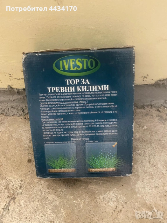 Продавам висококачествен тор за тревни площи на марката Ivesto. Пакетът е напълно нов и фабрично запечатан. Идеален за подхранване на вашата градина и постигане на гъста, зелена трева.