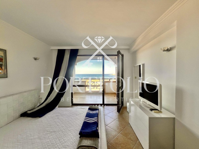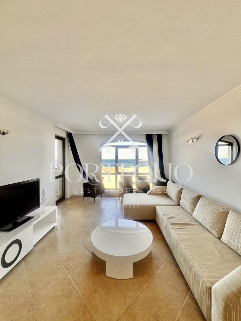 предлага в продажба тристаен апартамент с фантастичен морски изглед част от първокласен морски комплекс ситуиран на първа линия пред един от най-красивите плажове на българското Черноморие. Комплексът предлага още рецепция, видеонаблюдение, контролиран достъп, два луксозни ресторанта, плувен басейн с топла вода, богато озеленяване и красив ландшафтен дизайн, магазини.