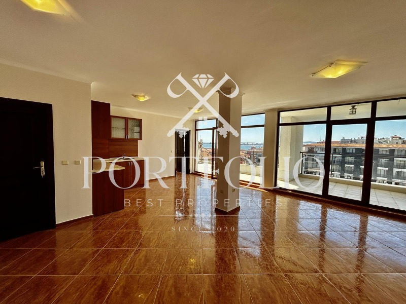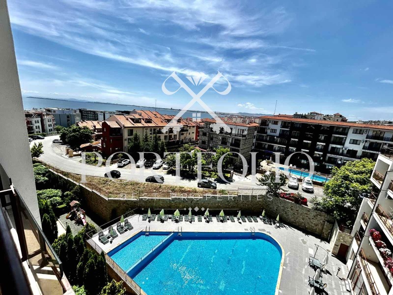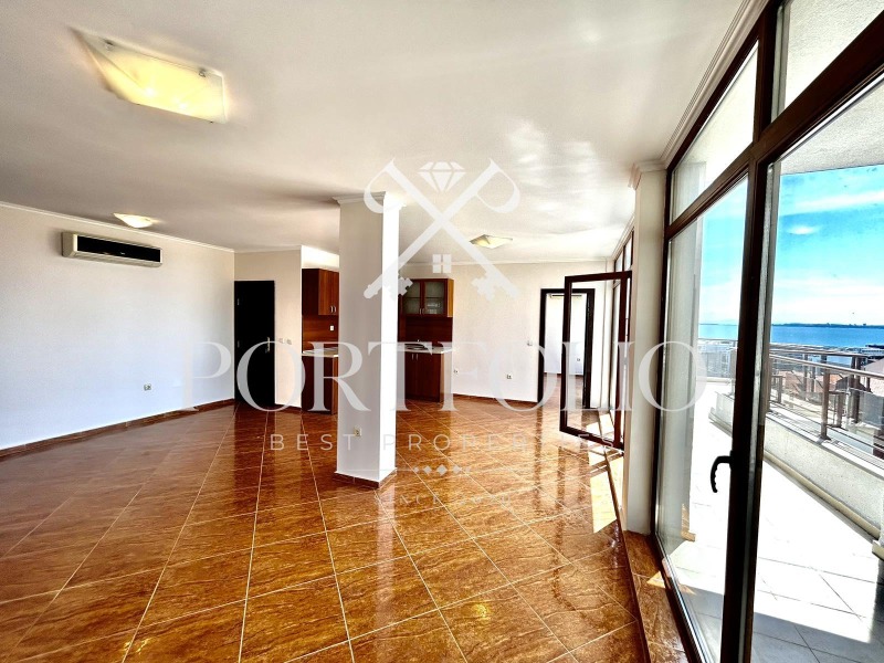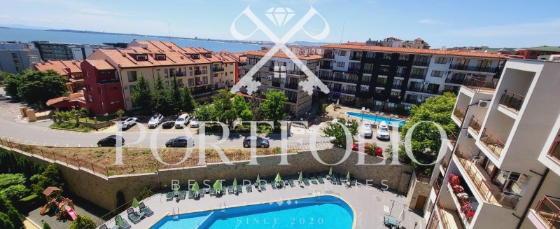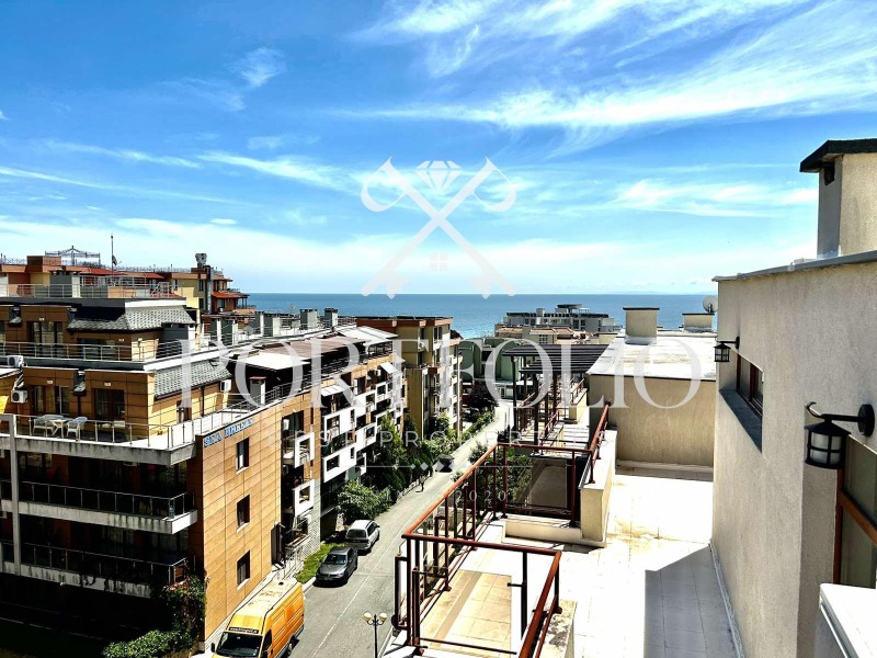 Апартаментът се състои от хол и всекидневна с кухня, две спални помещения, две бани със санитарен възел, разполага и с тераса позволяваща обзавеждане и разкриваща прекрасна морска гледка, още един балкон с гледка към планината. Апартамента е ситуиран на 7 жилищен етаж. Продаваме завършен до ключ в перфектно състояние! Поради състоянието и локацията си имота е перфектен, като инвестиционен имот, както и като ваканционен.