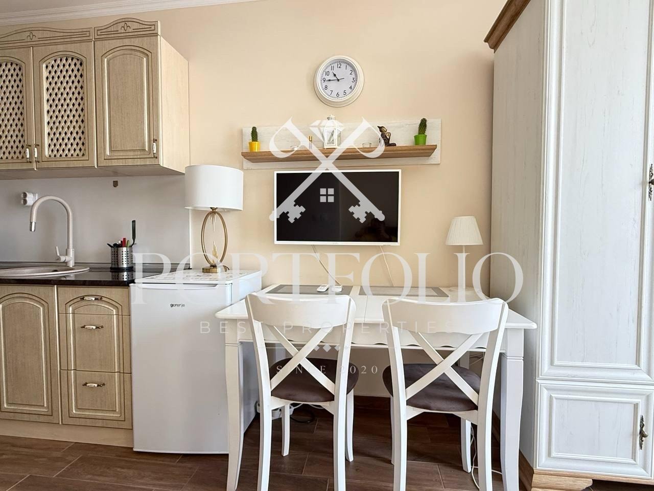 Представя в продажба модерно обзаведен нов едностаен апартамент, ситуиран в първокласният хитов комплекс на първа морска линия Валенсия Гардънс - гр. Несебър!