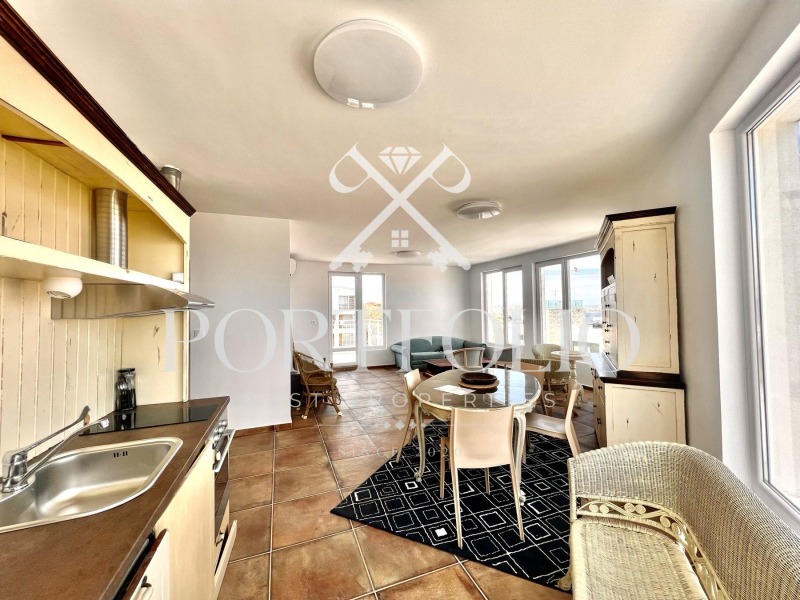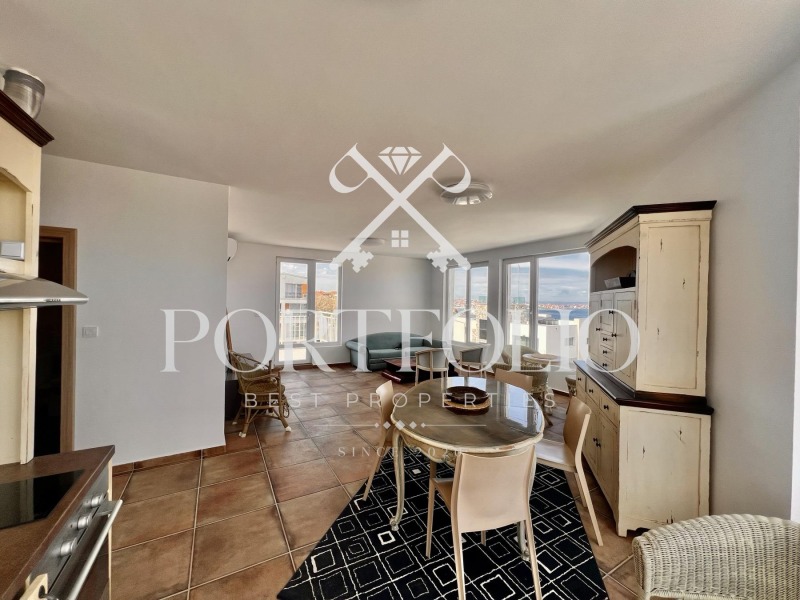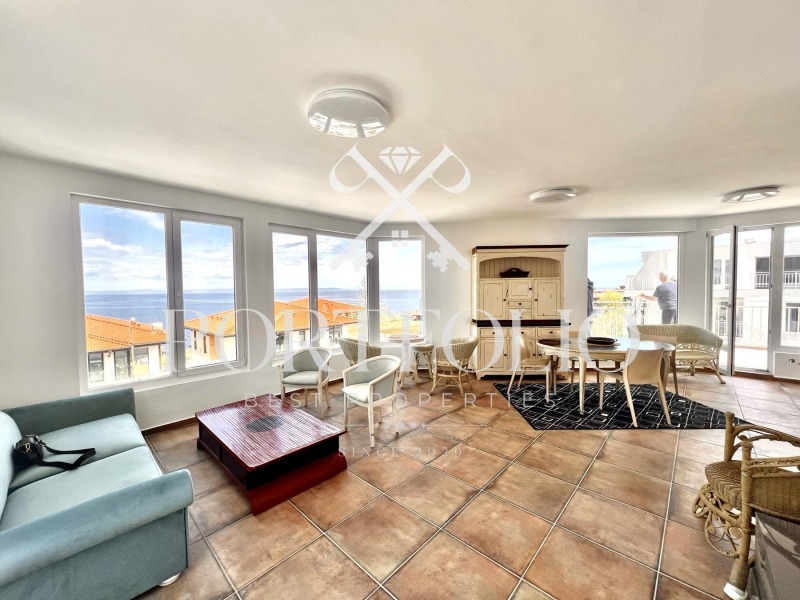 Апартаментът, който предлагаме за продажба е с много красива морска панорама, светъл, широк, с обзавеждане и две красиви широки тераси с фронтален изглед.