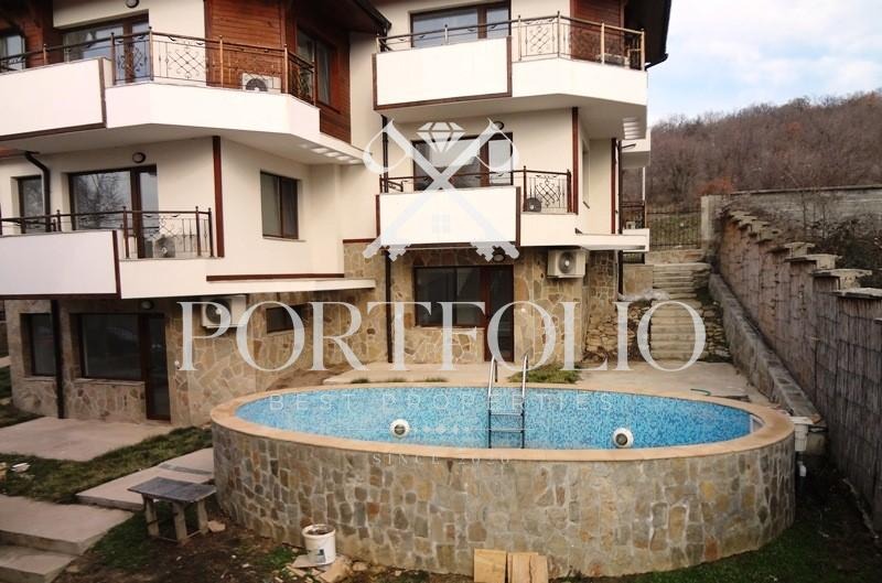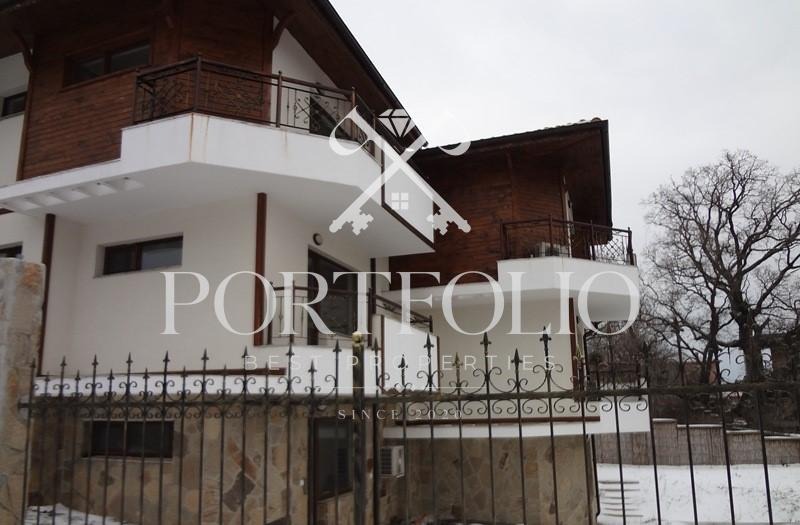 PORTFOLIO BEST PROPERTIES предлага в продажба триетажна нова къща в с. Кошарица местност 'Чолакова чешма' с разположени в нея три отделни апартамета. Къщата е дуплекс в общ парцел с открит плувен басейн, с красива външна фасада от естествен камък, дърво и мазилка, външно стълбище от естествен камък, ковано желязо по парапетите и масивна ограда.