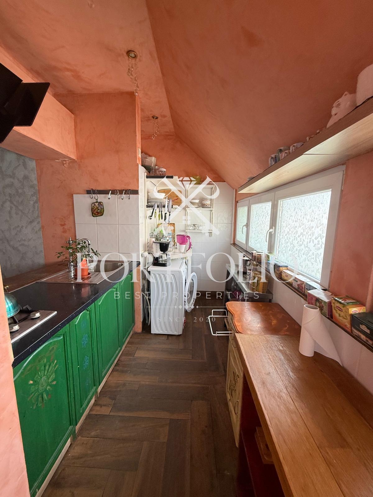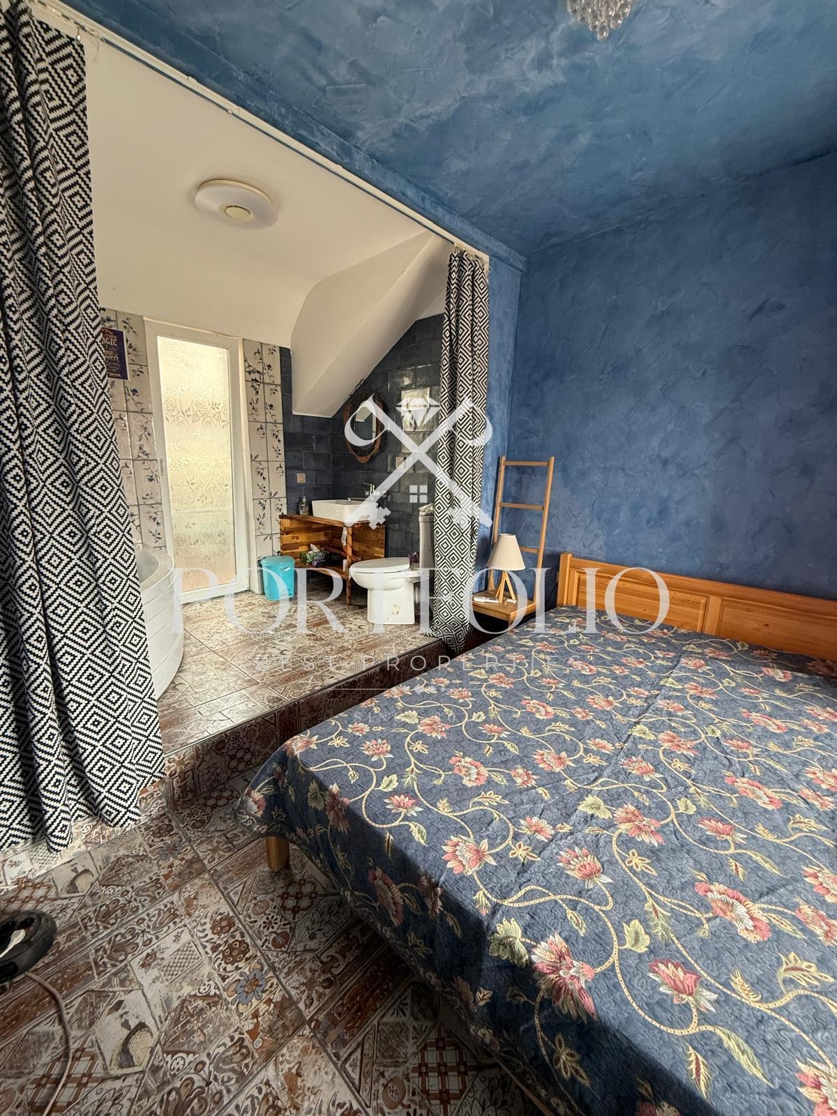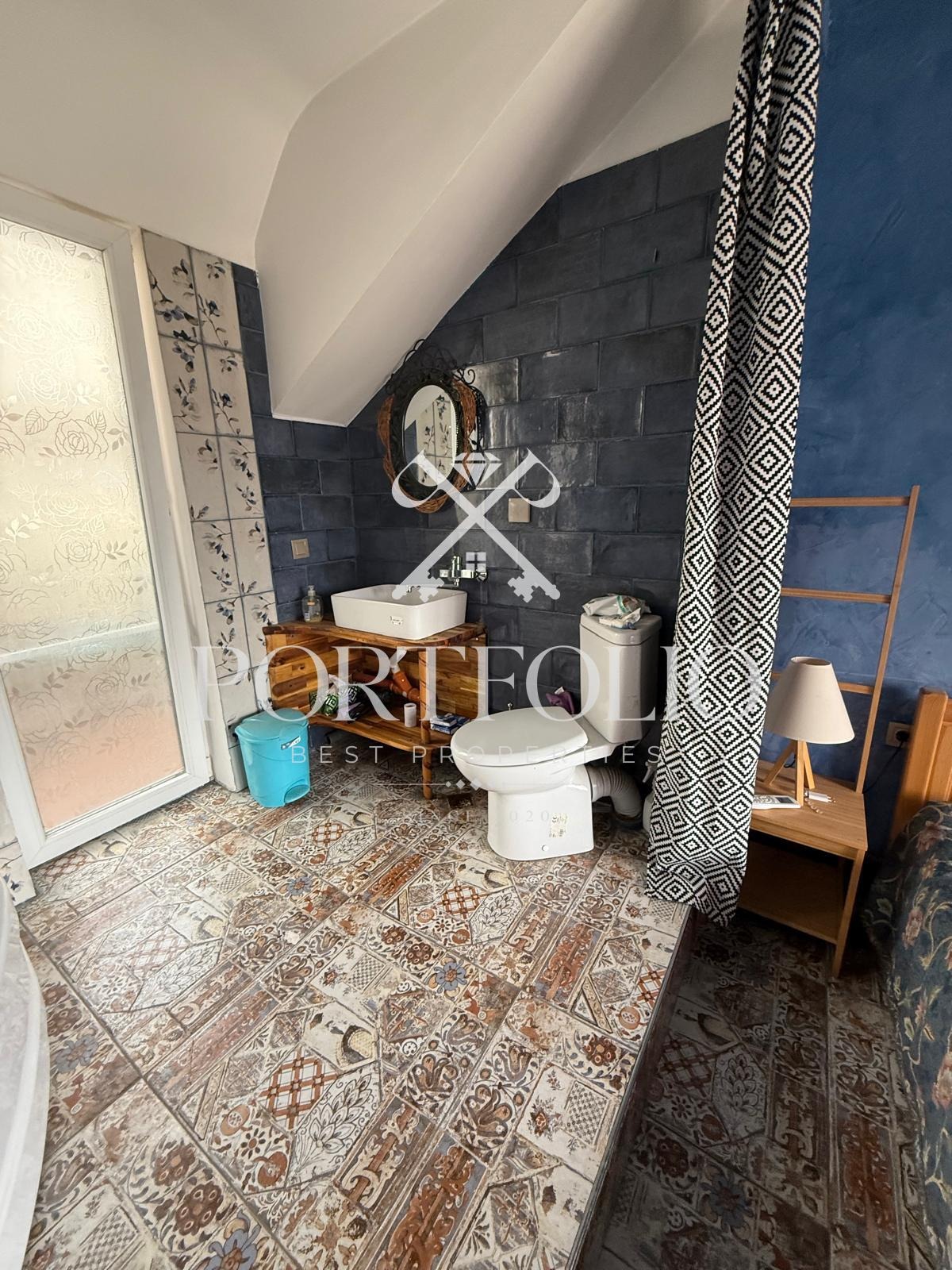 Стени с варова мазилка испанска стена , която регулира влажността и създава меко, дишащо покритие, Подове, облицовани с цветни испански плочки, добавящи характер и уют. Отопляеми стени и под в баня и тоалетна.