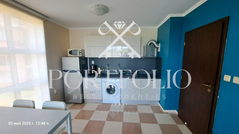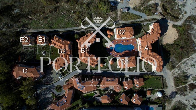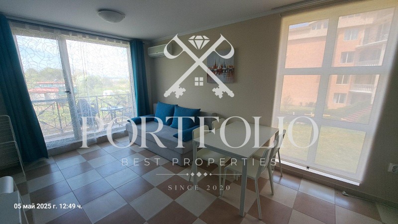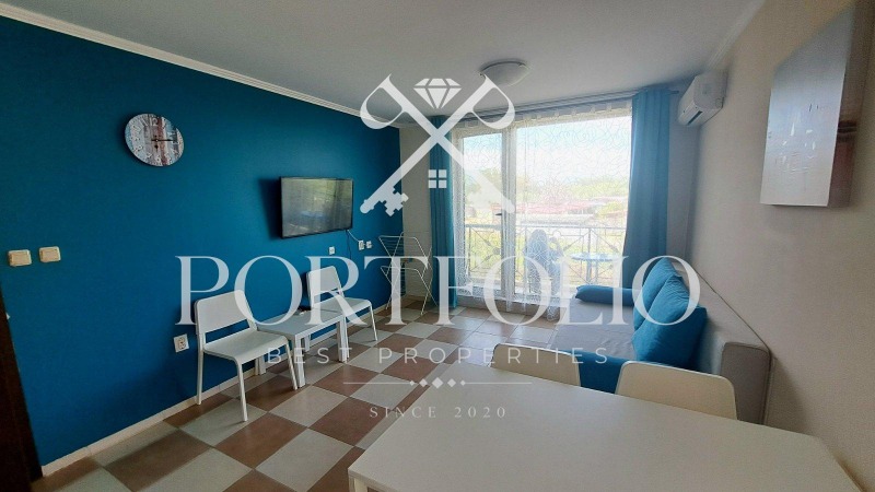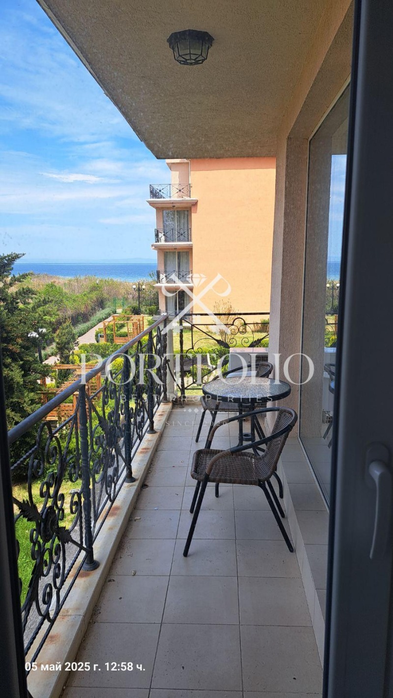 Имота се намира много близко до плажът в самият комплекс и предлага гледка към морето от всекидневната и терасата.