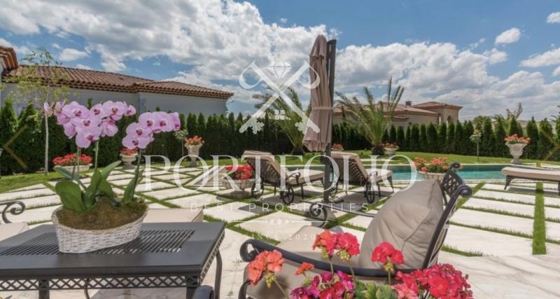 Къщата е част от един от най-елитните и луксозни комплекси къщи от тип бутиков, както в България така и в Европа, висок клас строителство луксозни самостоятелни къщи, всяка от които мебелирана, със собствен двор, басейн и градина. Къщите са с преобладаващ класически или в средиземноморски стил, а територията на комплекса има изграден плувен външен басейн, ресторант, фризьорски салон, паркови алеи и ландшафтен дизайн с красиви градини и богато озеленяване с разнообразие от екзотични видове растителност, детски площадки, които вашето дете може да използва по всяко време, предстои изграждане на спортни площадки и др. екстри и удобства осигуряващи пълен комфорт на всеки собственик. За вашата сигурност и комфорт комплекса осигурява контролиран достъп, физическа охрана и видеонаблюдение. На разположение на жителите на луксозният комплекс ще се предлагат всички услуги по обслужването на имотите и стопаните почистване, пране, гладене, готвене, гледане на деца, поддръжка на зелените площи др.