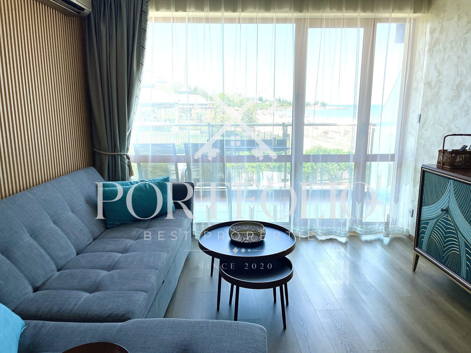 За имота: жилището е с площ от 70 кв.м, състои се от коридор, всекидневна с хол и кухня, спално помещение, баня със санитарен възел, тераса. Помещенията са просторни и светли. Открива се фронтална гледка към морето! Със смарт-хоум система с гласов контрол на осветление, завеси, музика и др., електрически легла, сензори навсякъде и луксозно ново обзавеждане.