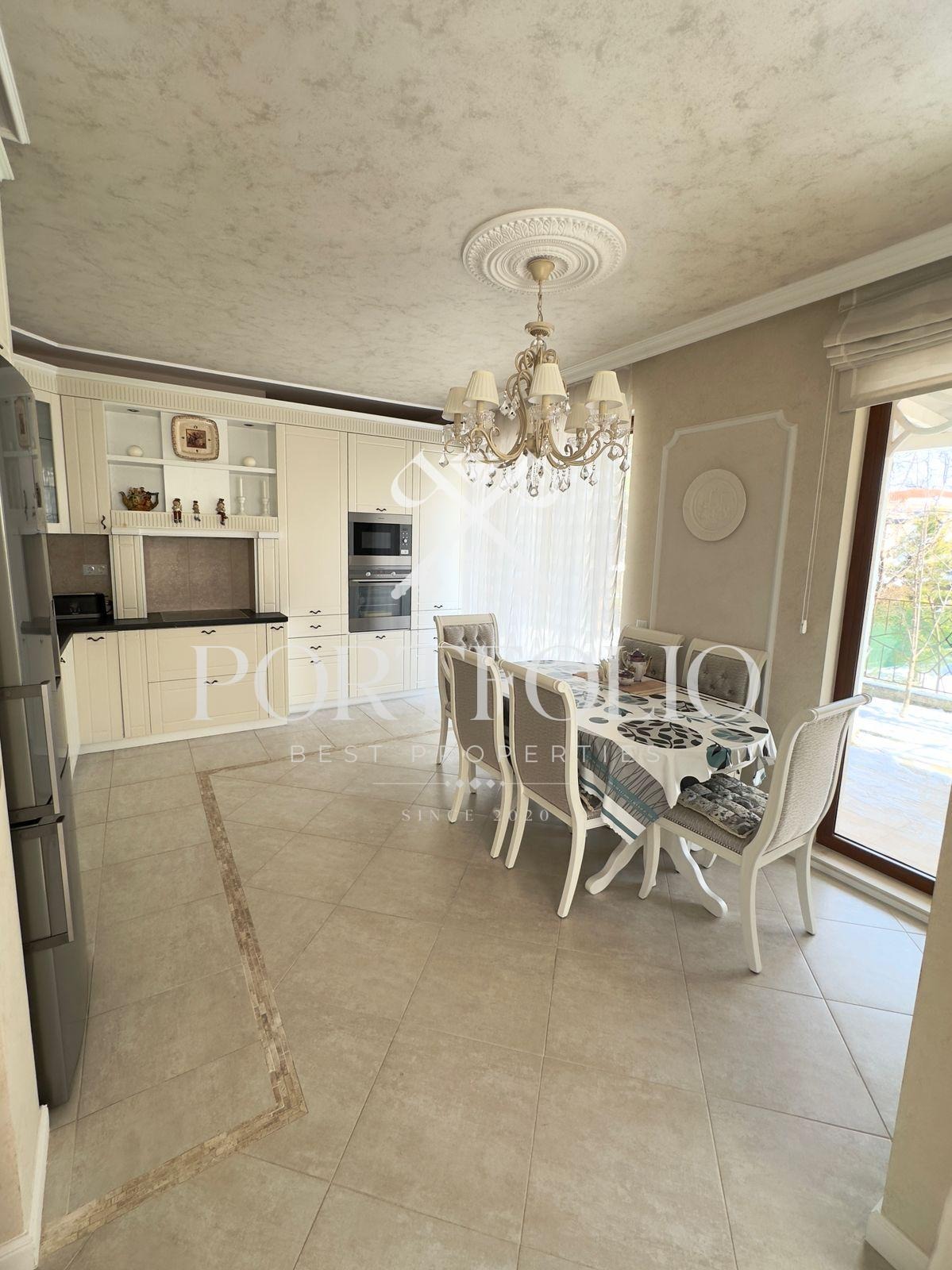 Предлагаме на вашето внимание напълно обзаведена къща с три спални, разположена в престижния комплекс \'Виктория Резиденс\'. Къщата разполага със собствен двор и споделен басеи?н, обслужващ 10 къщи. Комплексът е с контролиран достъп и денонощна охрана, което гарантира спокои?ствие и сигурност за жителите.