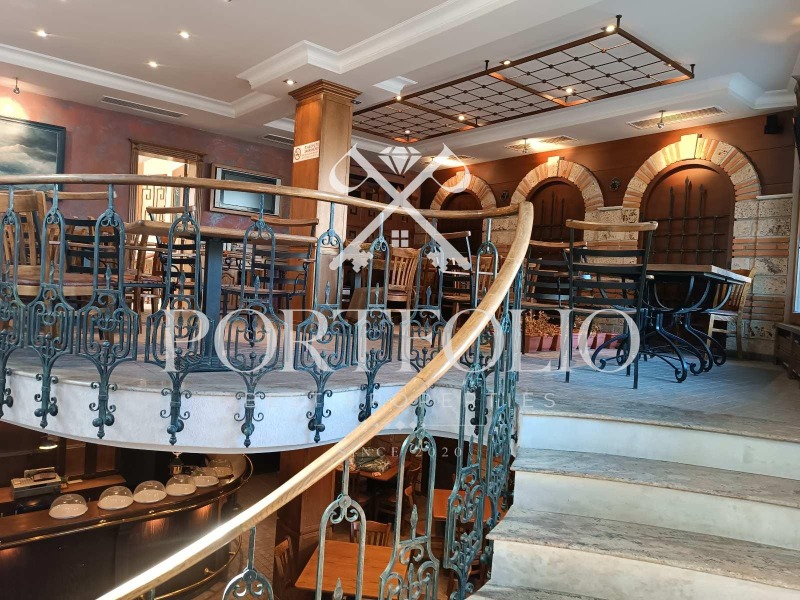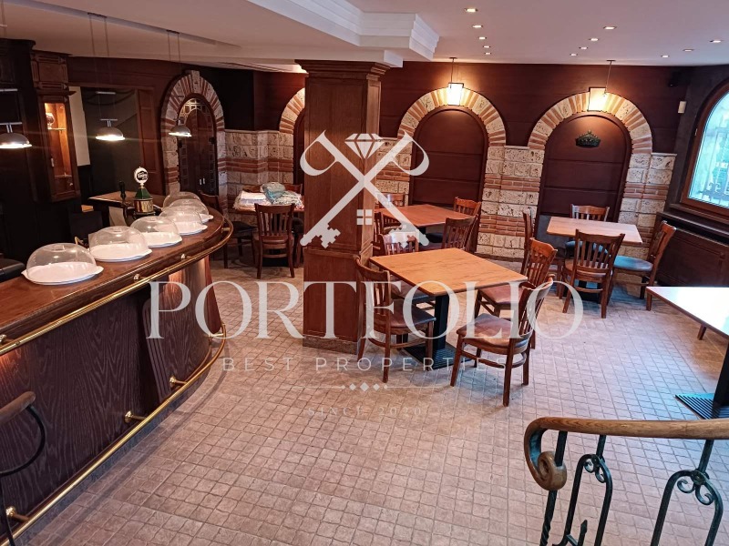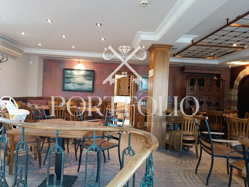 партер: ресторант състоящ се от вътрешна зала, бар, санитарни възли, външни места през летният период (общински наем). 50 вътрешни седящи места и 50 външни!