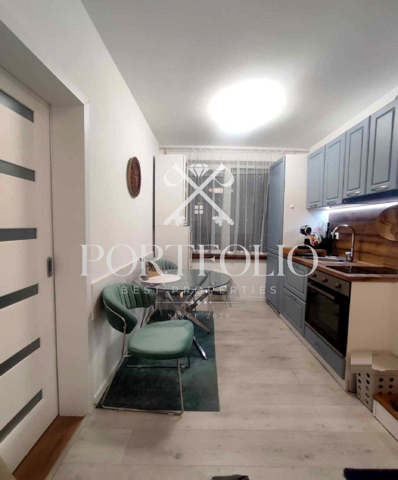 Разпределение: антре, коридор, дневна с кухненски кът, спално помещение, баня със сааитарен възел, тераса. Имота се предлага обзаведен, с нови мебели и техника.