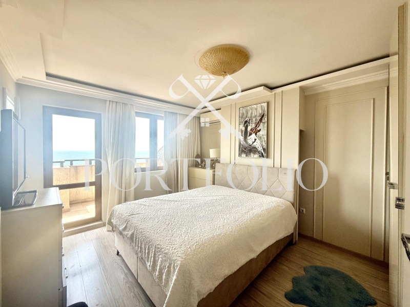 Апартаментът е с уникална морска панорама видима от всяка стая, много прозорци и естествена светлина, перфектно разпределение на пространство усвоено между кухня и всекидневна с хол преливащи в едно общо пространство, две просторни спални разположени в срещуположни крила на жилището, три бани със санитарни възела, широка панорамна тераса.