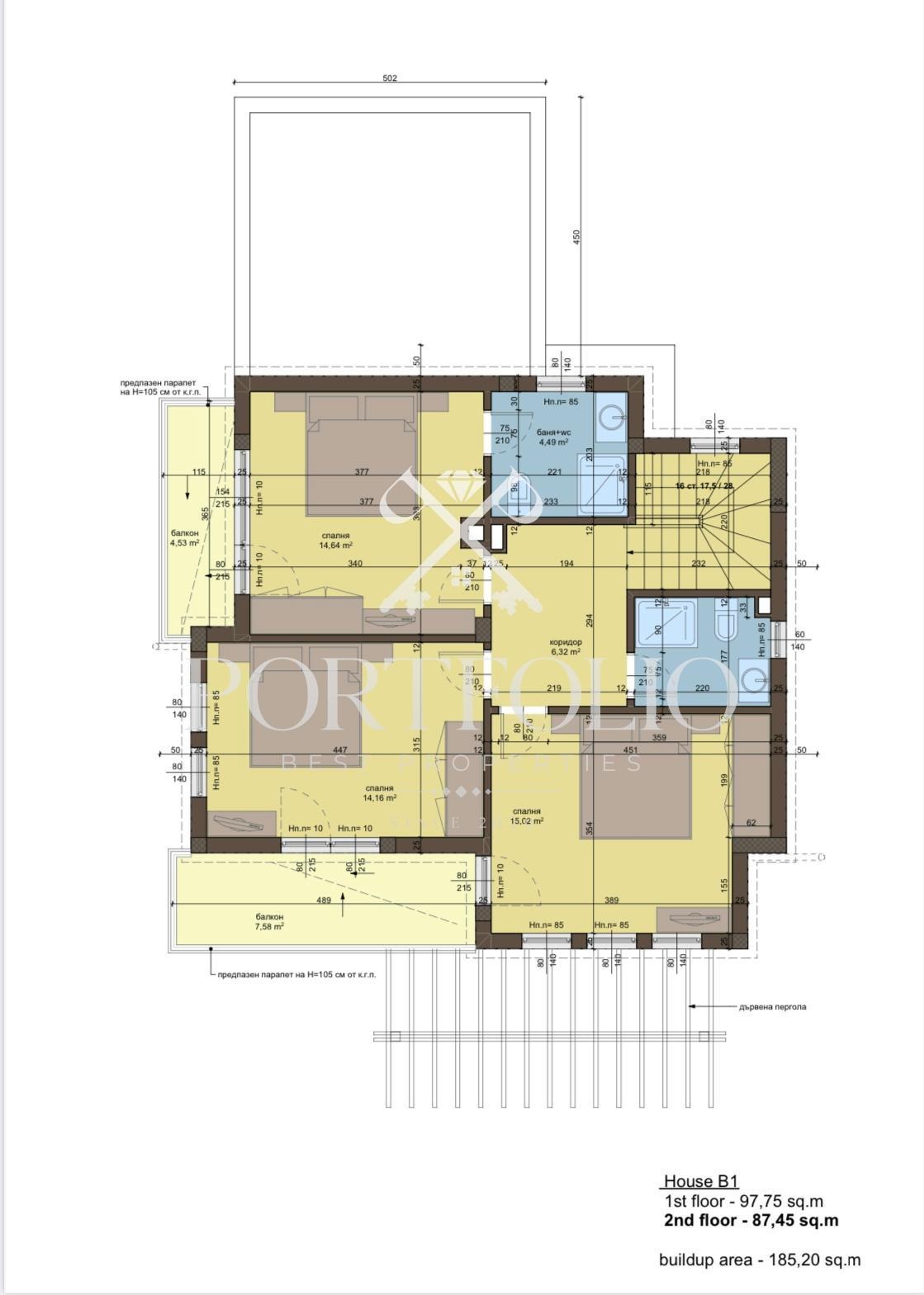 Ниво 2- Три спални стаи, две тераси и две бани със санитарен възел , широк коридор .