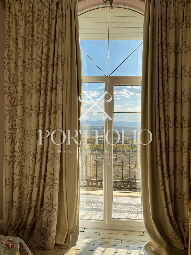 В дневната е изградена камина. Всички мебели в къщата са италиански, изработени по индивидуален проект.